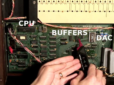 From experience, I could tell that there was some type of issue with the digital control circuits. Usually on this type of synth, the CPU runs a program in a continuous loop. It reads all of the knobs, switches, and keys, then updates the display and output. It then goes back to the beginning of the loop, and does it over and over again... very quickly. When there is some type of odd cyclical display issue, it often means that something is slowing down the CPU.