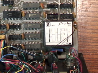 The early Model-800s used a 10-bit DAC from Zeltex (ZD431). This monolithic DAC comes in a rather large package (almost 6 cm x 6 cm), and was probably one of the most expensive components in the sequencer. At some point in the production process, they switched to a much cheaper 6-bit DAC, built from a resistor ladder, transistors, and an op-amp.